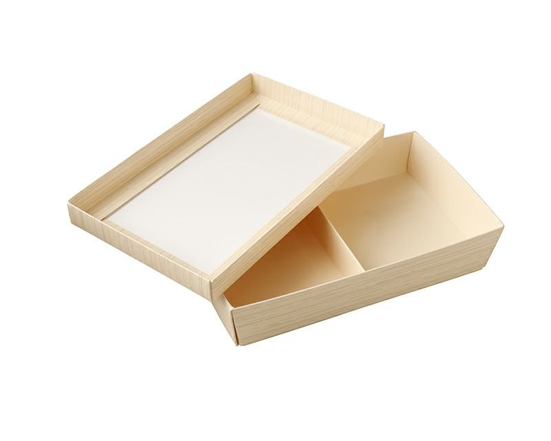 フタは、紙フタと透明フタの2種類ご用意。 ご用途によって仕切付きもお選びいただけます。 身は、素材と構造により水分がこぼれることがありません。