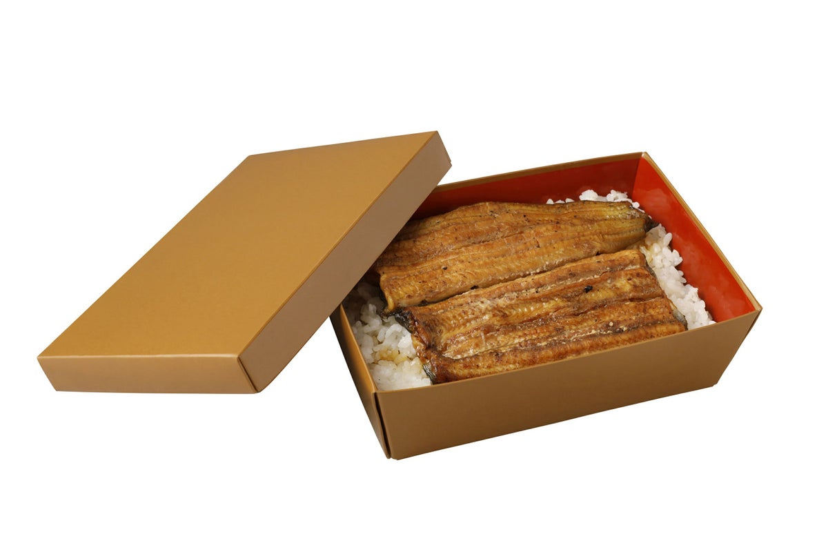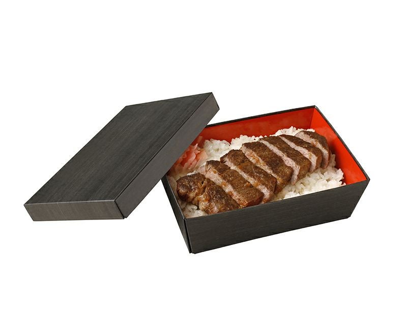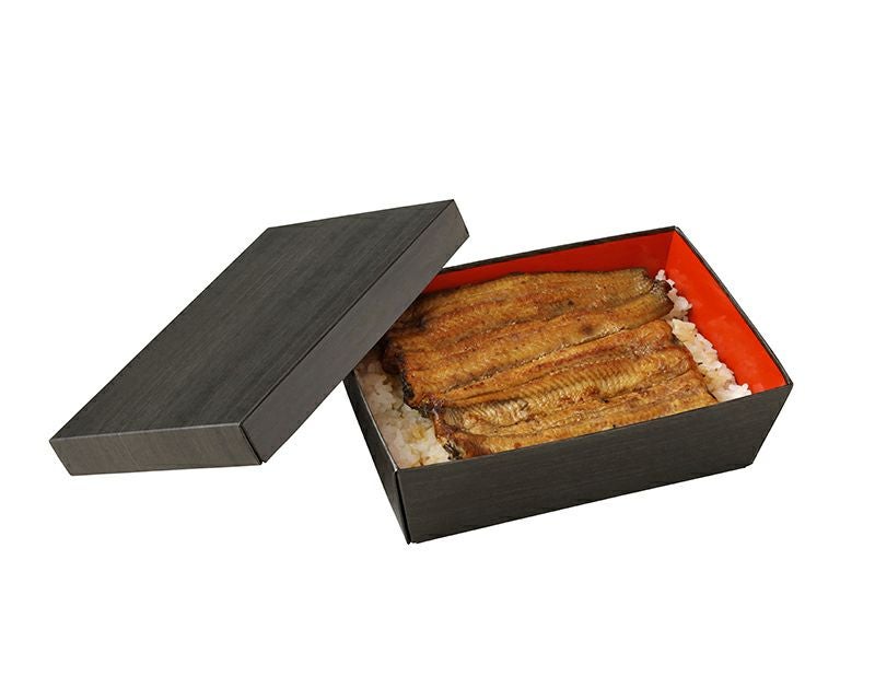 漆器のような質感で、高級感のある紙製の丼容器。 うな重や天重など、たれをかけても水分がこぼれることがありません。 ※商品詳細・購入は、画像をクリックしてください。