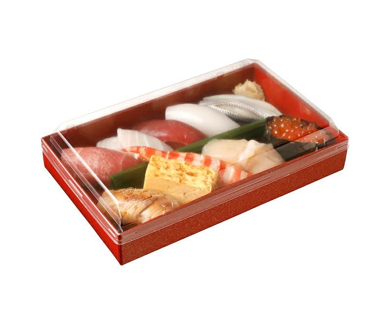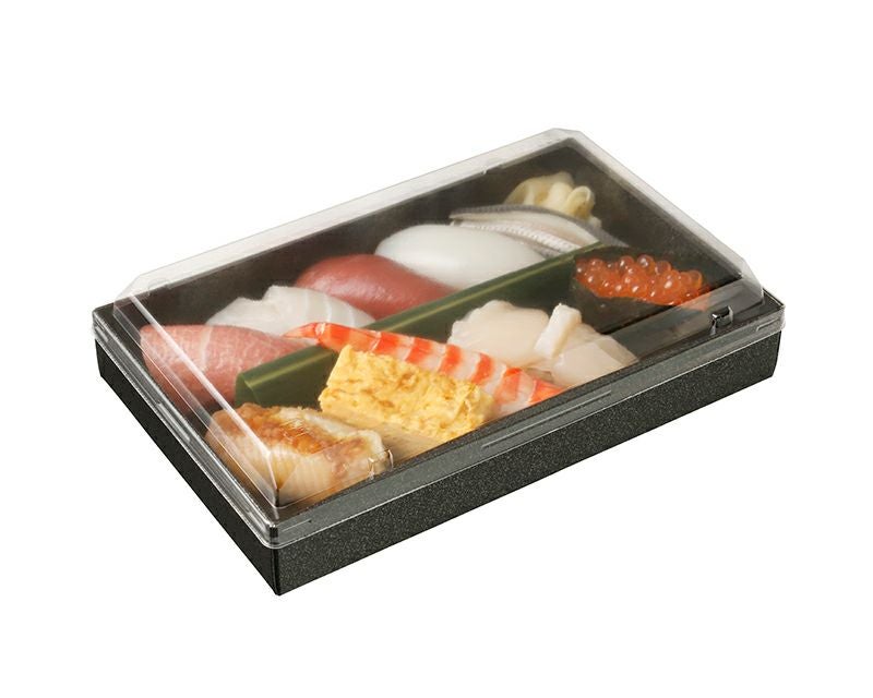 身の高さが30㎜と浅く、透明フタが上げフタになっているので、よりいっそうお料理をアピールできます。 フタは身と嵌合(かんごう)します。