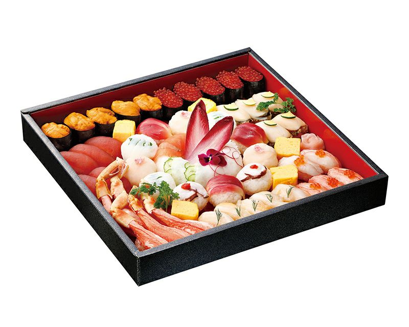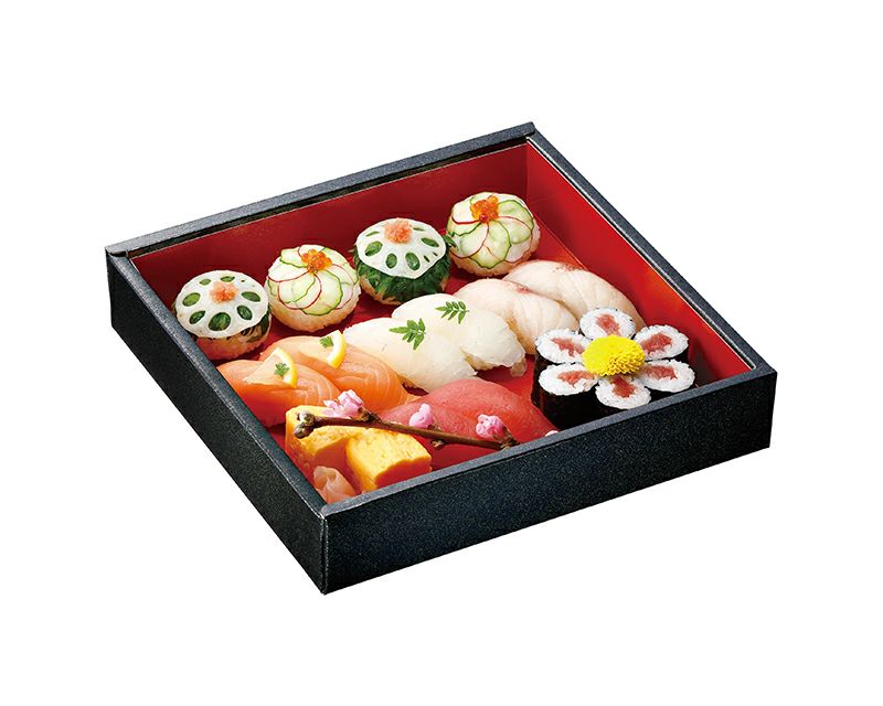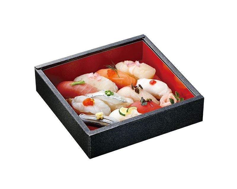 1人前から5人前まで7種類のサイズ展開。 寿司はもちろんのこと、オードブルにもおすすめの紙製ワンウェイ飯台です。 日本の伝統を感じさせる上品な朱色が、お料理に温かみを添えます。
