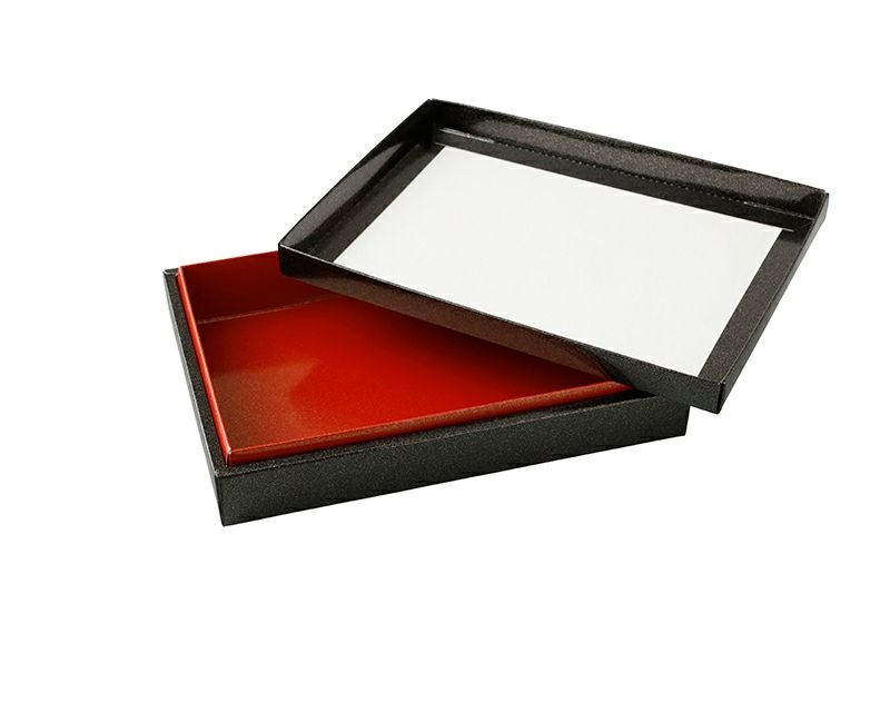 漆器のような質感で、高級感のある紙製の蒲焼折。 たれをかけても水分がこぼれることがありません。 ※商品詳細・購入は、画像をクリックしてください。